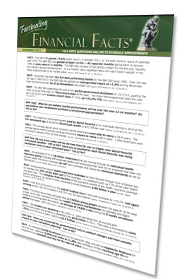Request our Fascinating Financial Facts Monthly Newsletter! These amazing facts will enlighten you with what's going on in the financial markets, economy, and more. This is a complimentary e-mail newsletter - Request FREE Below!
